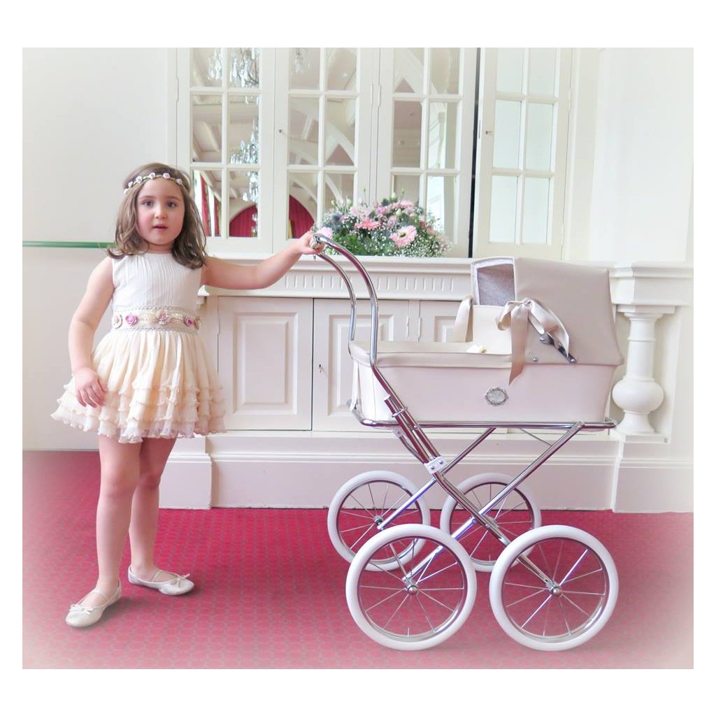 Luxusný kočík pre bábiky je určite tým najkrajším darčekom pre každú malú princeznú. Možnosť potlače vlastného textu - meno dieťaťa. Rozmer vaničky 40 x 64 cm, hĺbka 16cm.