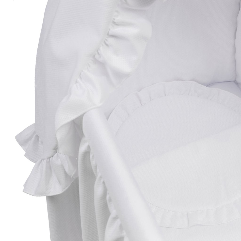 Biela kolíska s baldachýnom pre bábiky je tým najkrajším darčekom pre každú malú princeznú a jej bábiku. Pri výrobe sú používané vysokokvalitné luxusné materiály a zároveň ručná práca s detailným spracovaním je zárukou kvality, výroba 100% v Španielsku.