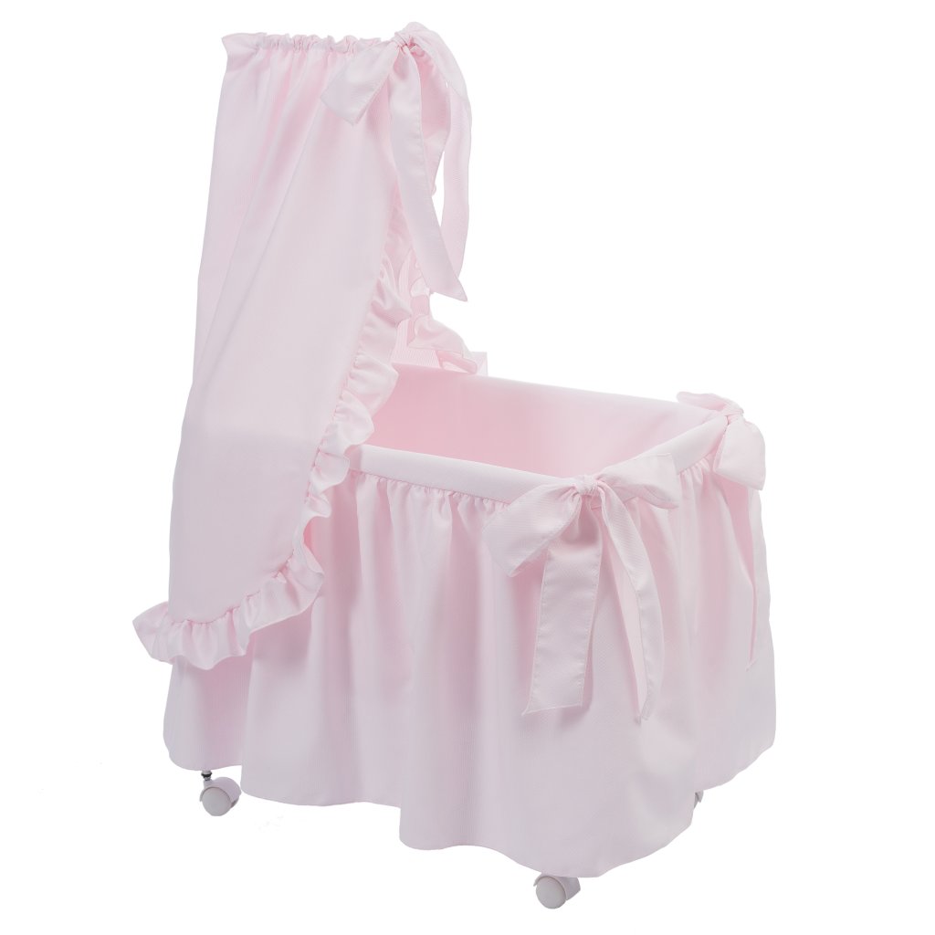Ružová kolíska s baldachýnom pre bábiky je tým najkrajším darčekom pre každú malú princeznú a jej bábiku. Pri výrobe sú používané vysokokvalitné luxusné materiály a zároveň ručná práca s detailným spracovaním je zárukou kvality, výroba 100% v Španielsku.