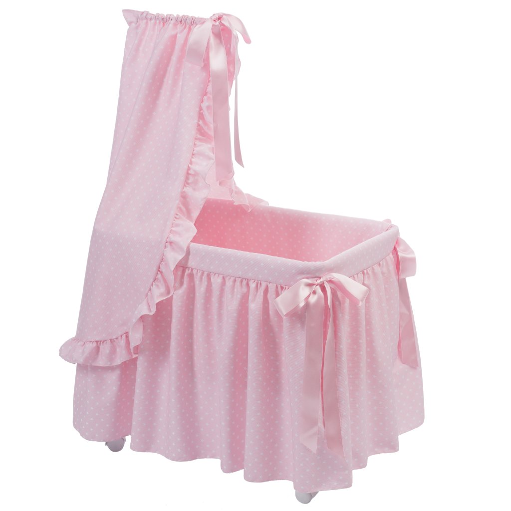 Ružová kolíska s baldachýnom pre bábiky je tým najkrajším darčekom pre každú malú princeznú a jej bábiku. Pri výrobe sú používané vysokokvalitné luxusné materiály a zároveň ručná práca s detailným spracovaním je zárukou kvality, výroba 100% v Španielsku.