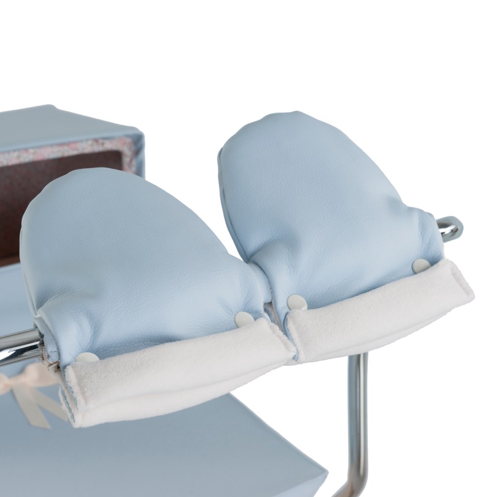 Bebelux kožené rukavice na kočík pre bábiky bledomodré
