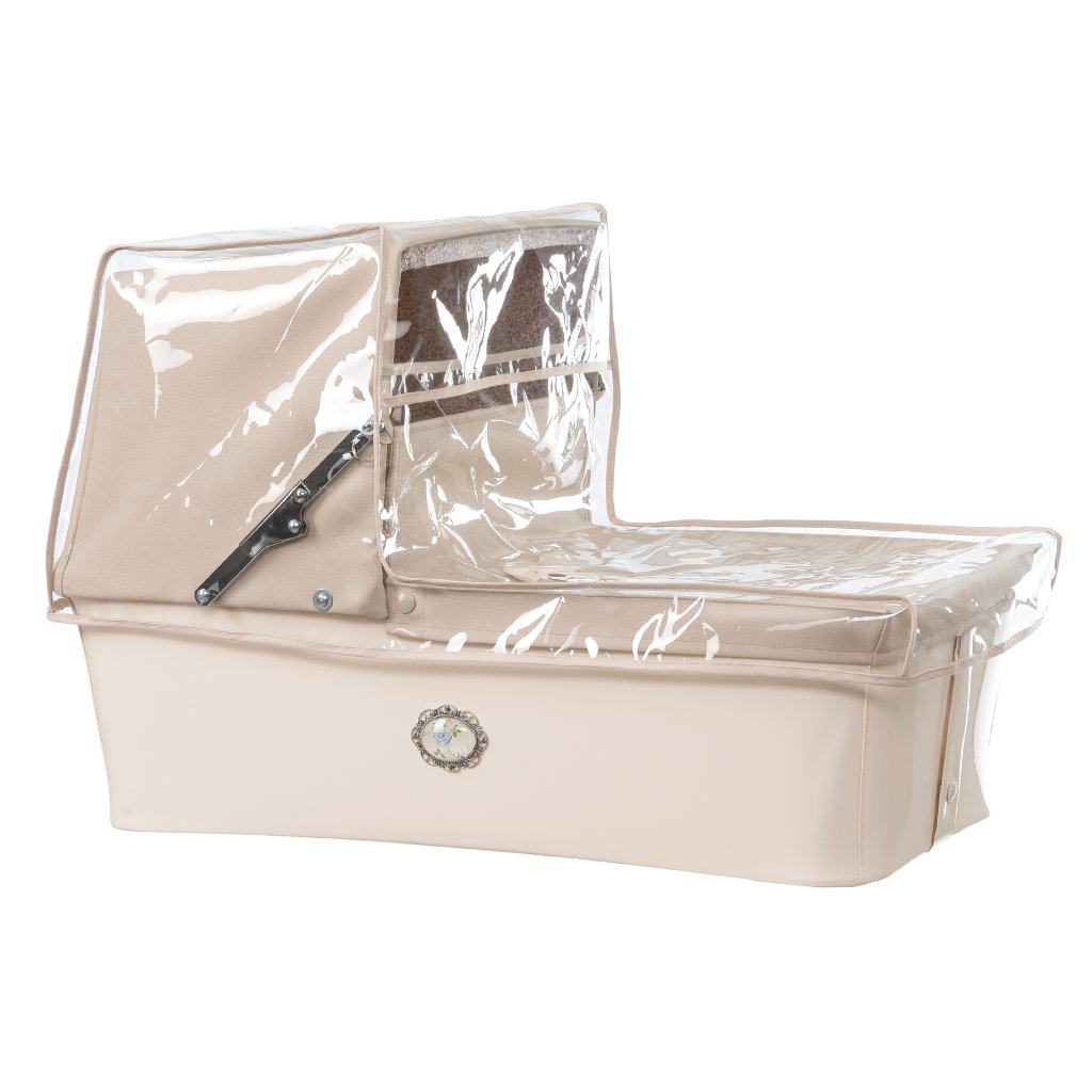 Praktická priesvitná pláštenka ku kočíku Bebelux s béžovým lemom.