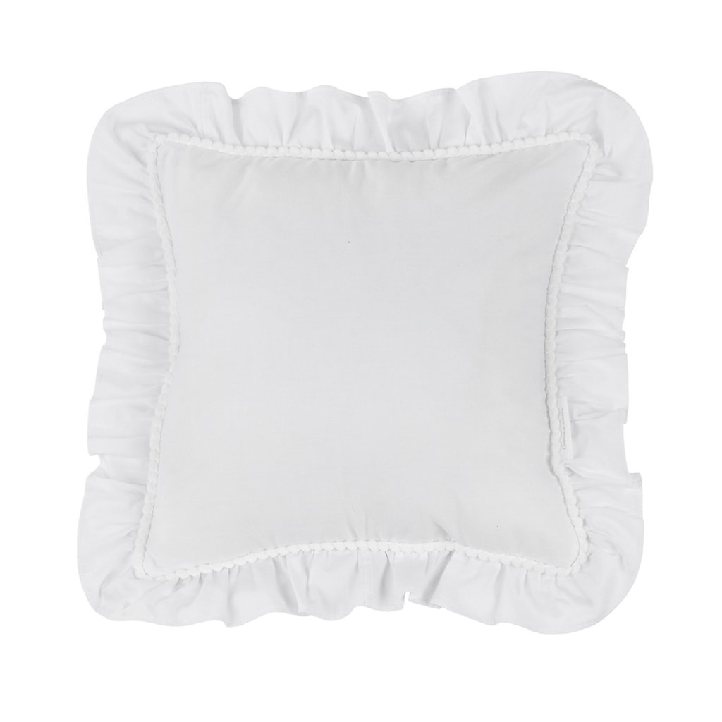Boho dekoračný vankúš s volánom biely