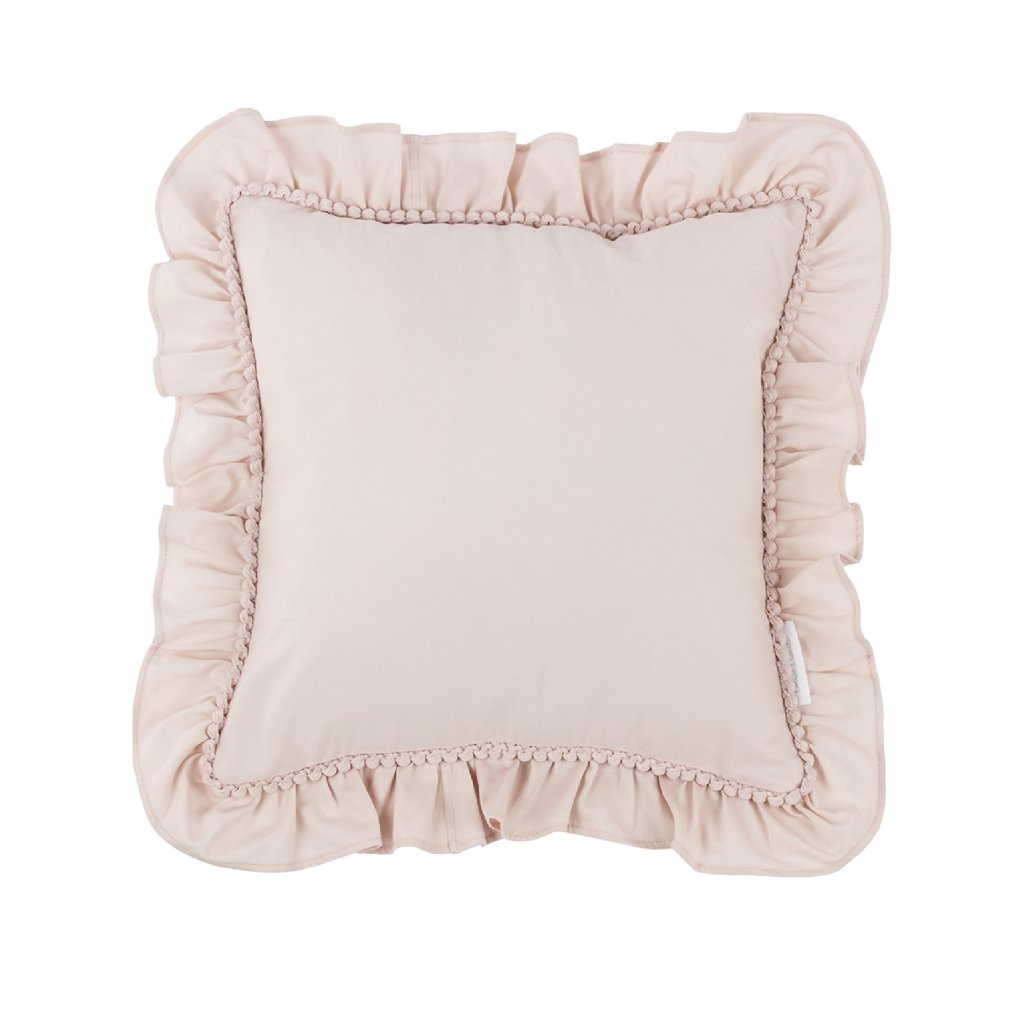 Boho dekoračný vankúš s volánom pudrovo ružová
