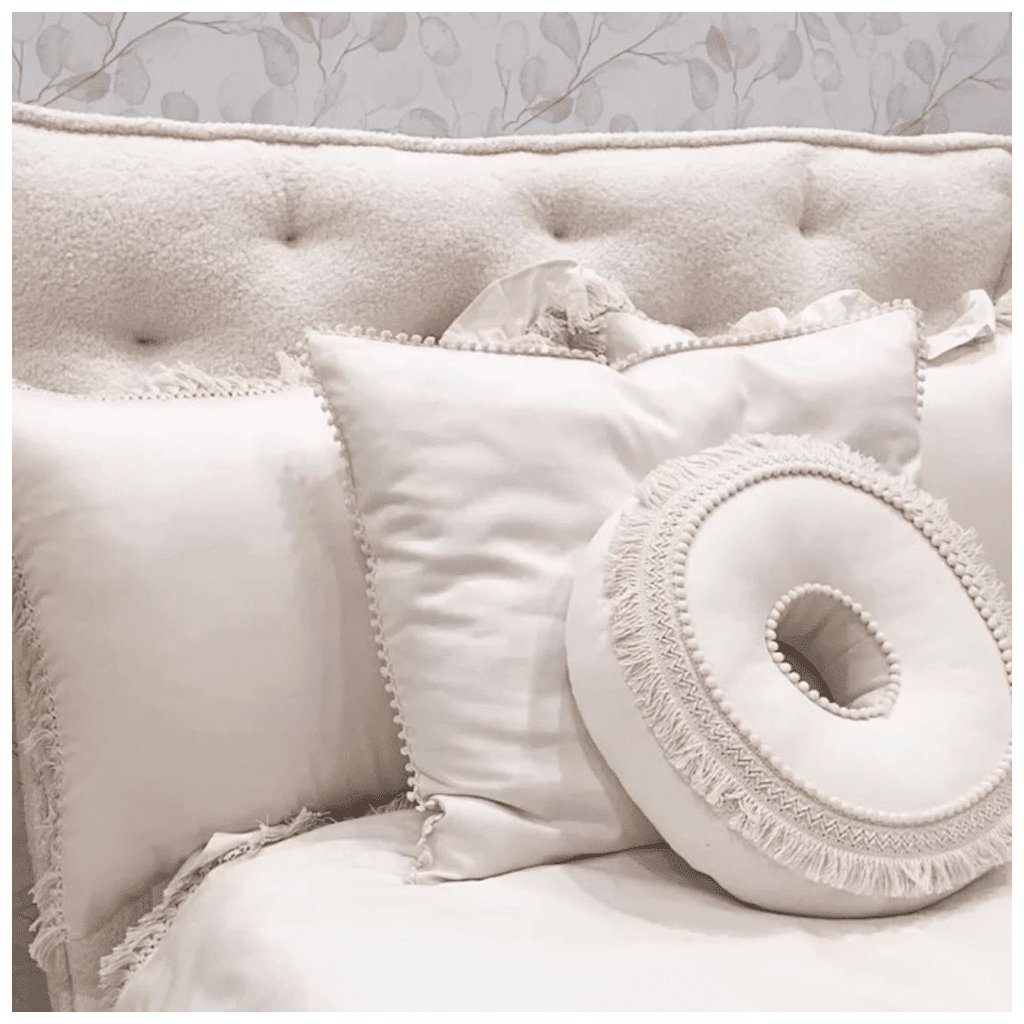 Vankúš Donut Boho biely zdobený čipkou a bublinkami vnáša do interiéru jedinečnú atmosféru navodzujúcu prázdninovú atmosféru a sladkosť bezstarostných dní. Vankúše v štýle Boho zaujmú svojím štýlom a napriek tomu, že sú mimoriadne dekoratívne, vďaka minimalistickým farbám našej kolekcie sa skvele hodia do interiérov rôznych štýlov.