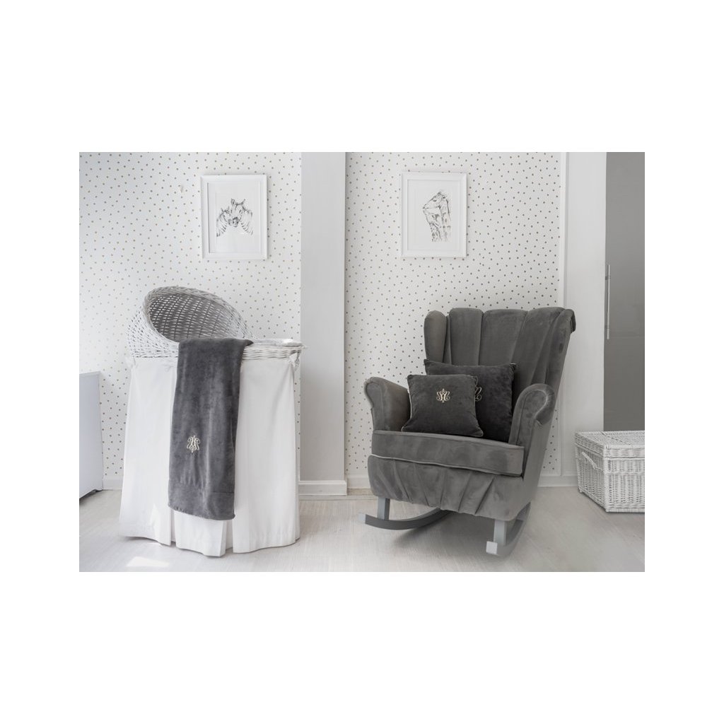 Veľké, veľmi pohodlné hojdacie kreslo. 'Ušatý' typ so širokou chrbtovou opierkou v tvare mušle. Je vyrobený z kvalitného prateľného textilu v sivej farbe. Kreslo je ideálne pre dojčiace mamičky kvôli vysokému operadlu, "uškám" pod hlavou a podrúčkam. Hojdanie bábätko upokojí a umožní mu rýchlejšie zaspať. Obohatí každý interiér - detskú izbu, obývačku a iné.