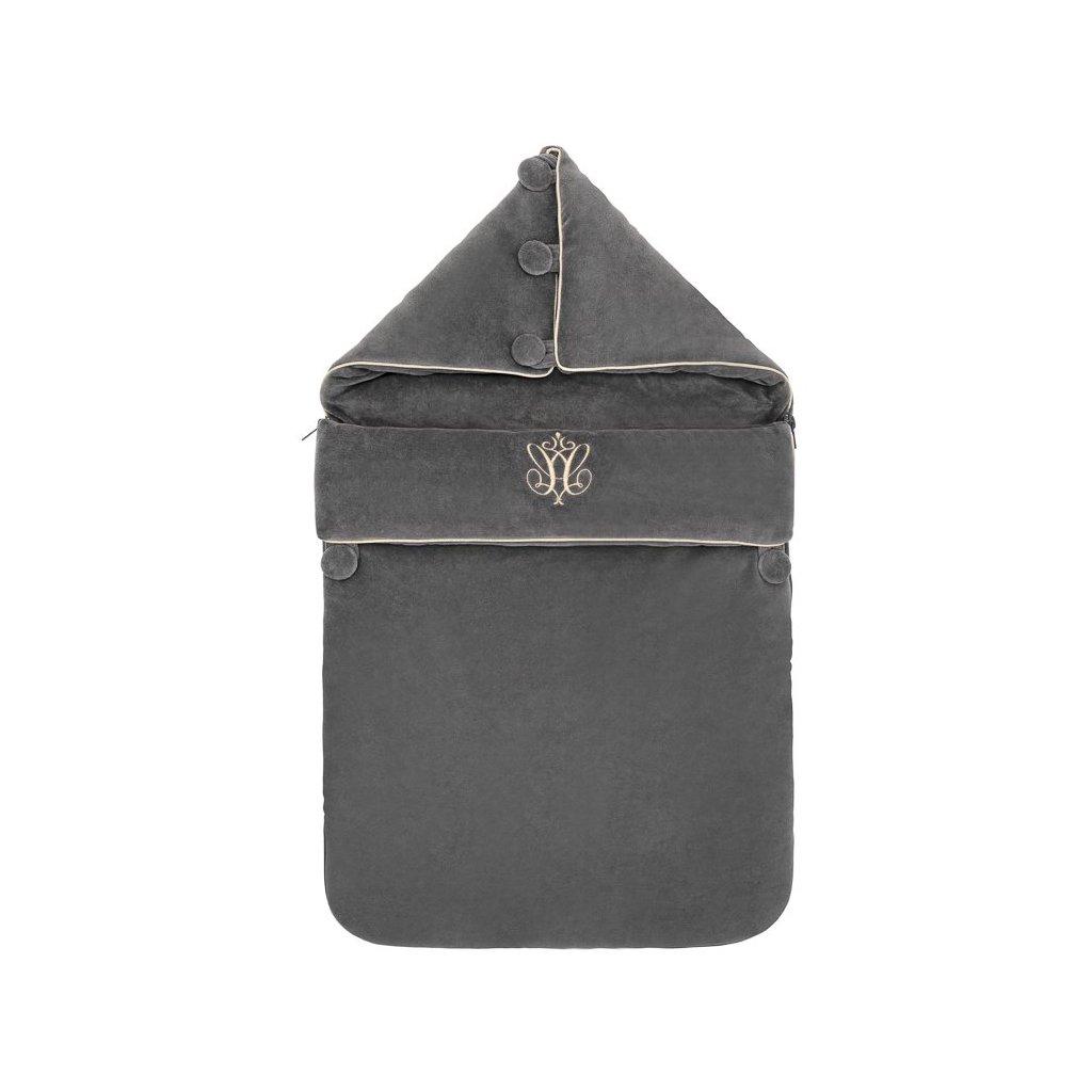 Elegantná perinka vyrobená z mäkkého antracitového zamatu, ktorá je zdobená zlatým znakom. Táto perinka má kapucňu na gombíky a po rozložení môže ísť o deku alebo podložku. V zadnej časti perinky sú špeciálne otvory, ktoré vám umožňujú perinku používať v autosedačke.