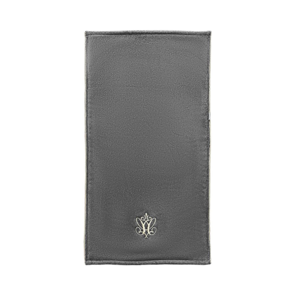 Poťah na prebaľovaciu podložku. Látka z kolekcie Antracitový lesk. Vyrobená z antracitového froté, zdobená zlatou vsadkou a výšivkou.