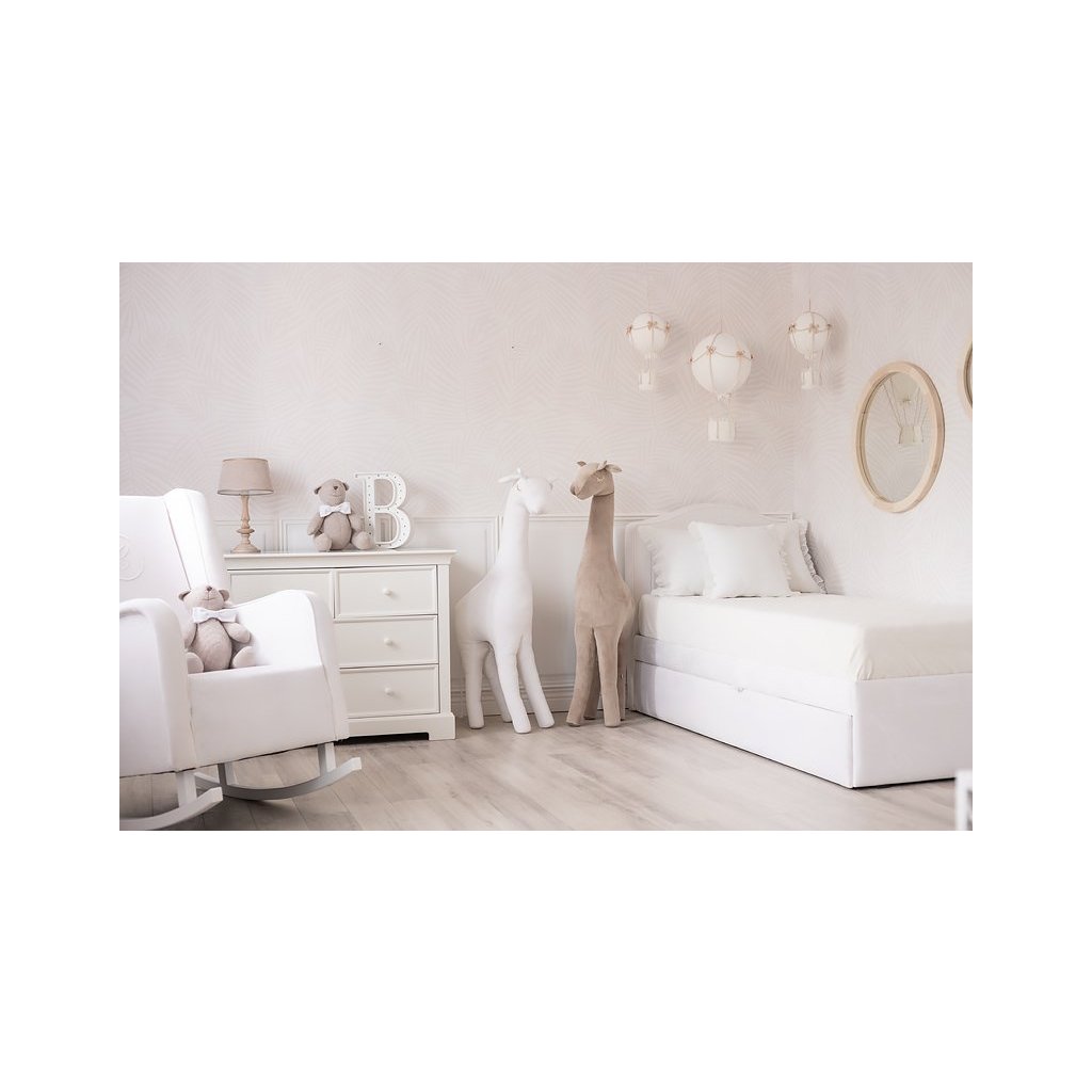 Elegantná detská posteľ s exkluzívnou výšivkou s písmenom „C“. Čelo postele a rám sú čalúnené kvalitnou umývateľnou textíliou vo farbe modrá, vďaka čomu je nábytok ešte funkčnejší.