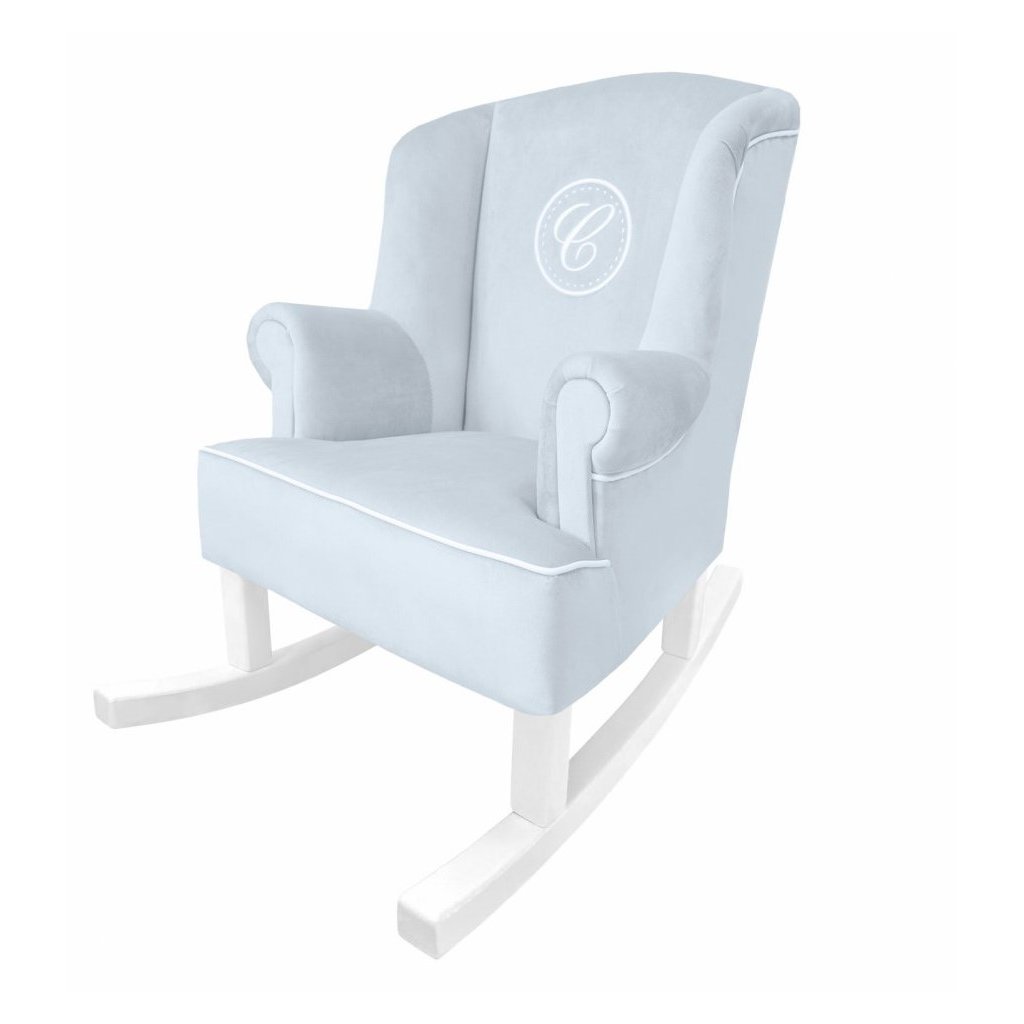 Elegantné štylizované mini hojdacie kreslo potiahnuté kvalitnou umývateľnou textíliou v nadčasovej farbe slonovej kosti.Zdobené exkluzívnym písmenom "C".Krásny klasický nábytok, ktorý obohatí každú detskú izbičku.