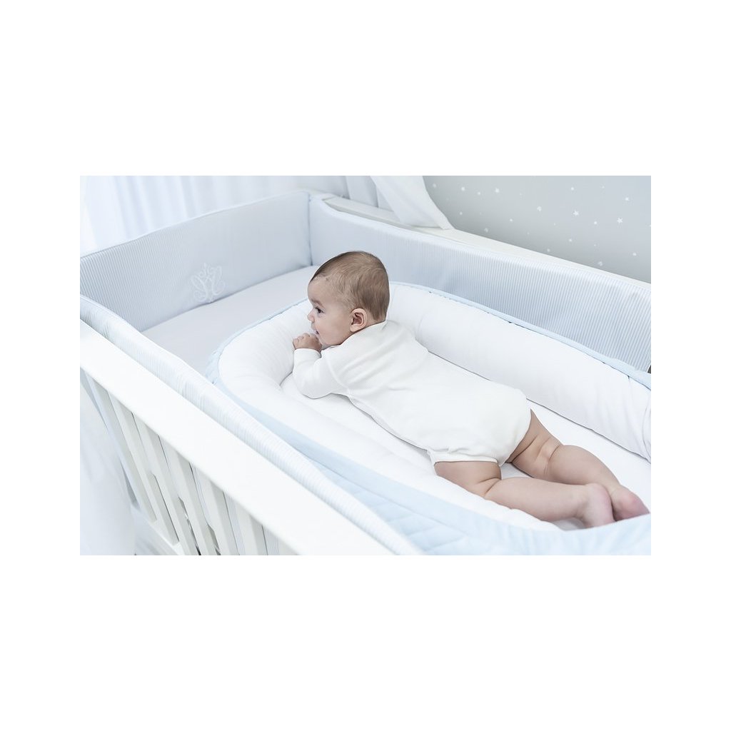 Hniezdo do postieľkyByby Blue je všestranný pomocník, ktorý zabezpečí ochranu a pohodlný spánok vášho dieťatka do veku 6 mes. Dieťa počas prvého roku svojho života prechádza najväčšími zmenami v svojom živote, a práve počas tohto obdobia sa najviac naučí, vníma všetky pocity a podnety okolo seba, a potrebuje veľa energie. Preto je povinnosťou dospelých postarať sa o jeho kvalitný a ničím nerušený spánok a tak pozitívne ovplyvniť jeho zdravý vývin.