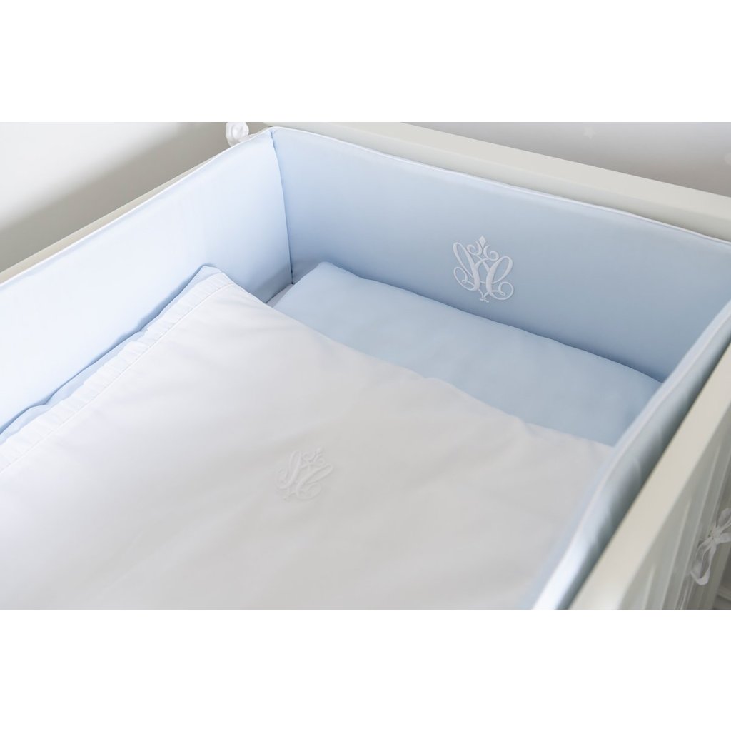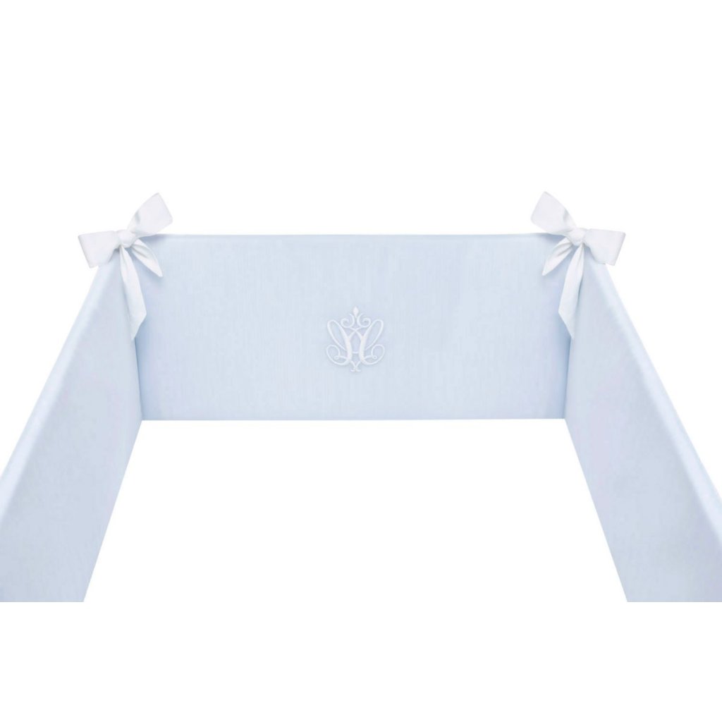 Ochranný mantinel do postieľky je vyrobený z vysoko kvalitnej prešívanej látky zdobený elegantným znakom. Vďaka výplni zo špeciálnej špongie je mantinel tuhý a dobre priľne k posteli. Krátke a široké šnúrky umožňujú jednoduché pripevnenie k priečkam. Prešívaný poťah sa zapína na zips, vďaka čomu je snímateľný. Poťah aj vnútorná výplň mantinela sú prateľné.
