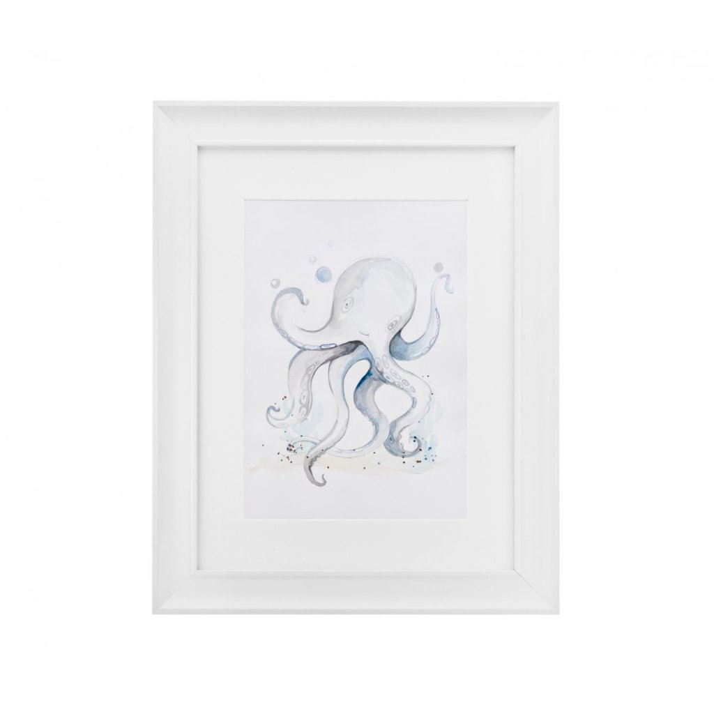 Krásny obrázok roztomilej chobotnice. Pevný elegantný rám je vyrobený z dreva.