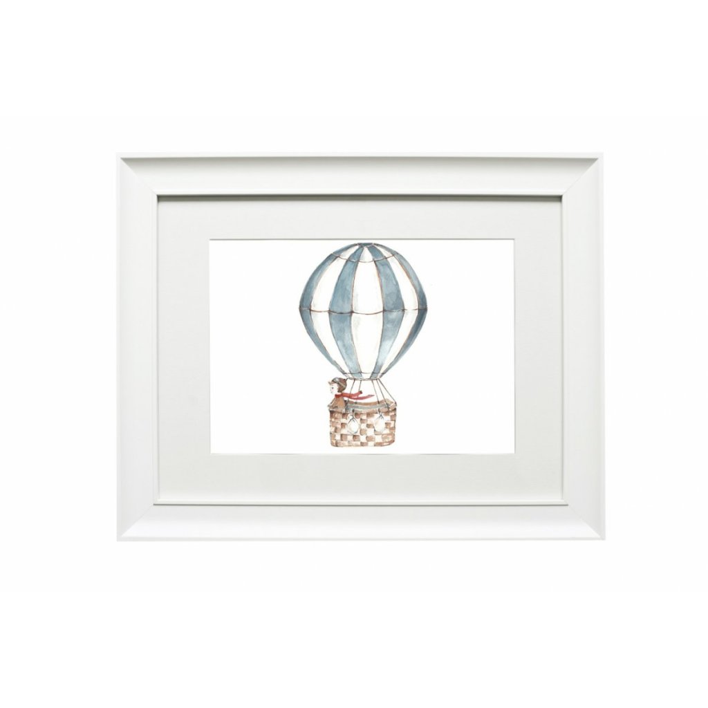 Krásny obrázok chlapca v teplovzdušnom balóne. Pevný elegantný rám je vyrobený z dreva.