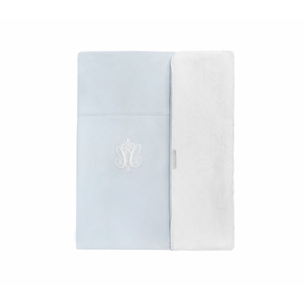 Hrejivá zimná deka z velúru v jemnej bledomodrej farbe. Z jednej strany je hrejivý plyš v bielej farbe. Zdobená štýlovým emblémom. Bude skvelým doplnkom výbavičky pre chlapčeka a dobrým nápadom na darček pre dieťa. Balené v elegantnej krabičke.