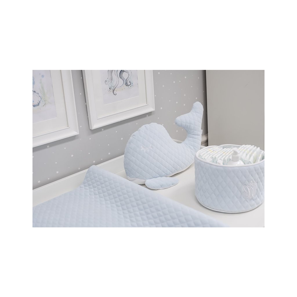 Vystužená elegantná prebaľovacia podložka mimoriadne pohodlná na prebaľovanie vášho bábätka vďaka vysoko kvalitným a jemným materiálom, pričom kombinuje funkčnosť s estetikou. Poduška je pokrytá snímateľným poťahom z prešívanej bledomodrej látky. Zvýšené okraje chránia dieťa pred úrazom. Certifikovaná prebaľovacia podložka bez škodlivých chemikálií, vyrobená z umývateľného PVC, pričom vnútro tvorí mäkká špongia.