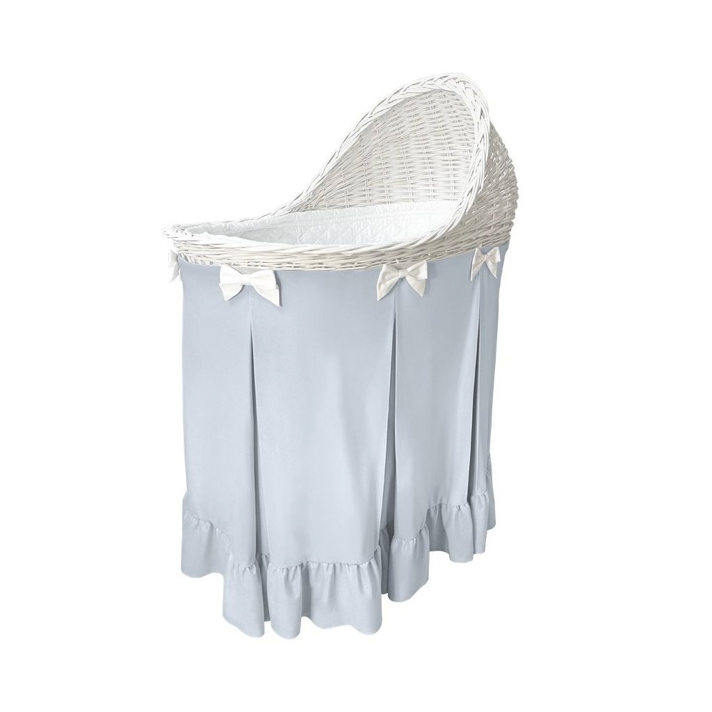 Caramella Baby Blue prútená kolíska s modrou sukňou a volánom