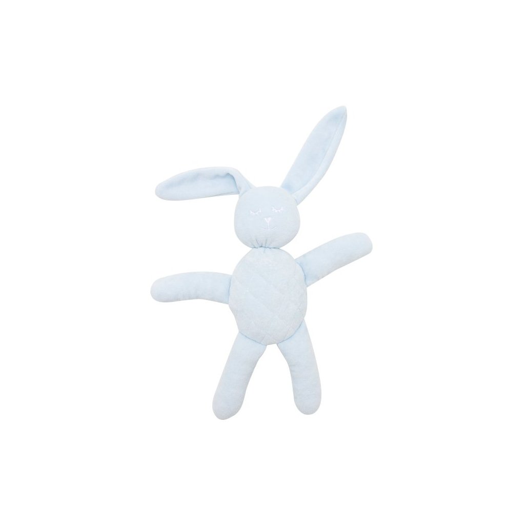 Rozkošný ručne vyrábaný zajačik s hrkálkou z bledomodrého prešívaného velúru. Určite sa stane obľúbenou hračkou každého dieťaťa a zároveň bude nevšednou dekoráciou v detskej izbičke.