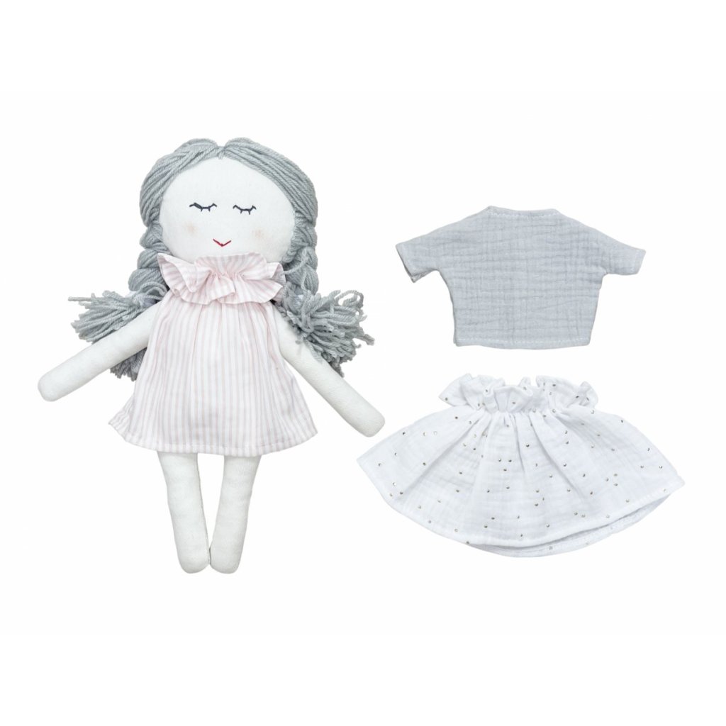 Krásna ručne vyrobená bábika s doplnkovou sadou oblečenia. Bude to najlepší priateľ vášho dieťaťa a krásna dekorácia v detskej izbičke.