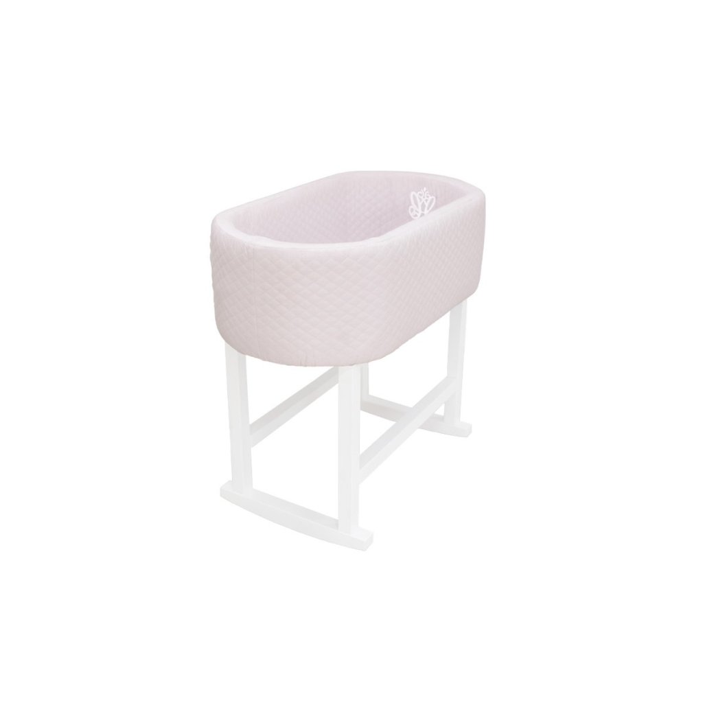 Elegantná kolíska čalúnená ružovou prešívanou látkou a zdobená trojrozmernou výšivkou. Tento útulný kus nábytku poskytuje dieťaťu jemné hojdanie, a tým aj pokojný spánok. Balenie obsahuje kolísku a matrac. Textílie nie sú súčasťou.