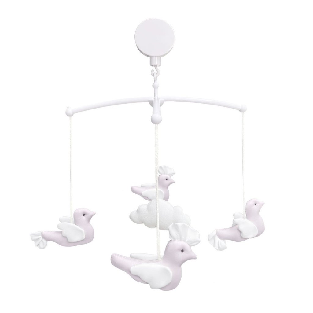 Kolotoč do postieľky s krásnymi ružovými vtáčikmi. Kolotoč hrá relaxačnú melódiu.