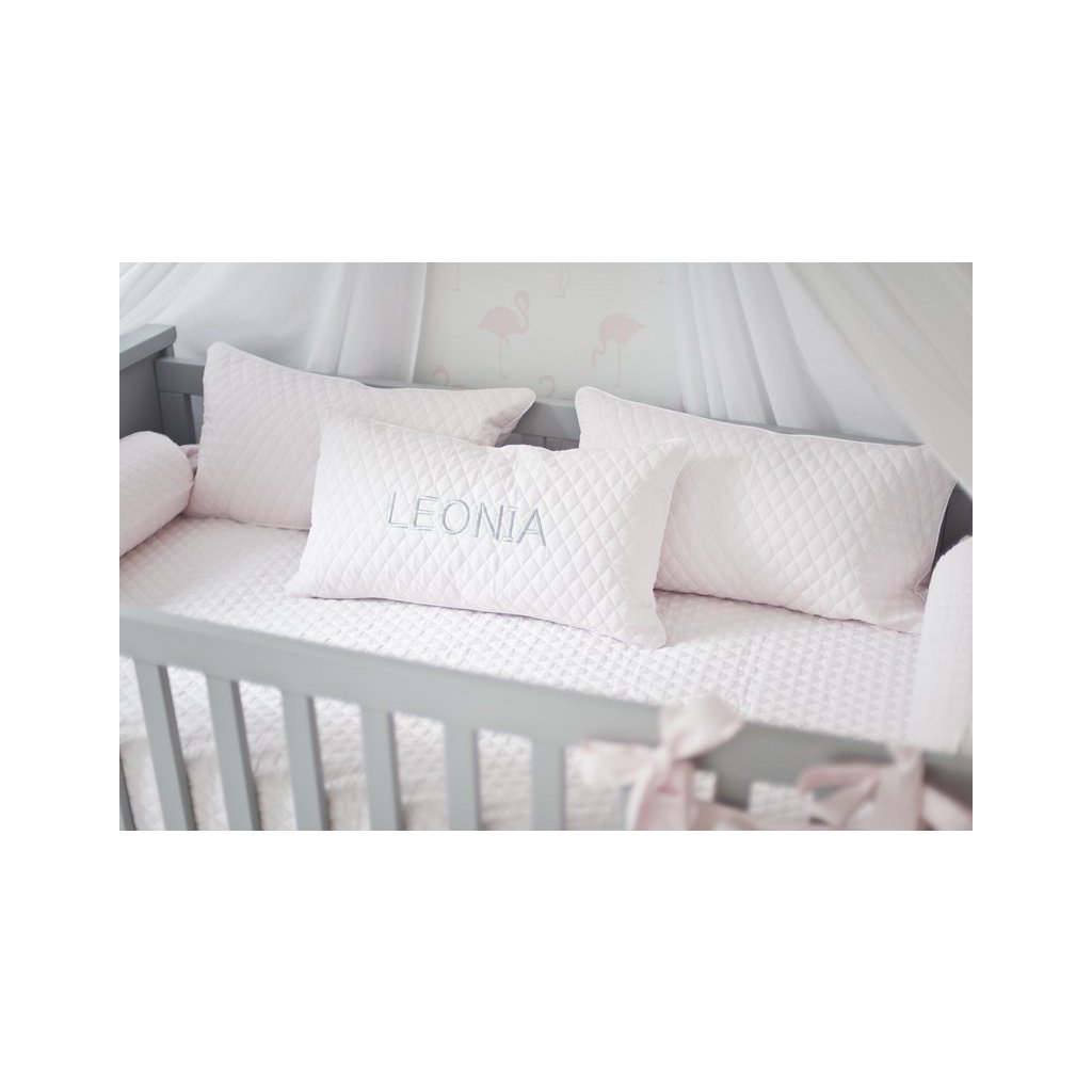 Krásny a štýlový detský podhlavník vyrobený z veľmi mäkkej, vysoko kvalitnej prešívanej bavlny v ružovej farbe. Zdobené elegantnou výšivkou. Bude skvelou dekoráciou v...