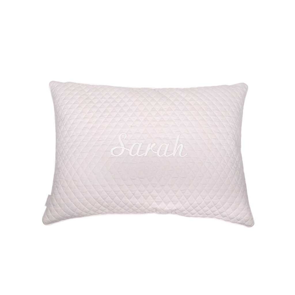 Krásny prešívaný vankúšik v jemnej ružovej farbe, zakončený bielym čalúneným lemom a ozdobený elegantnou výšivkou s menom Vášho dieťatka. Zapína sa vzadu na zips. Dostupné v dvoch veľkostiach. Dokonale sa hodí k nášmu detskému ružovému prehozu. Súčasťou vankúšika je obliečka na vankúš s výplňou. Meno dieťaťa napíšte do poznámky pri finalizovaní objednávky.