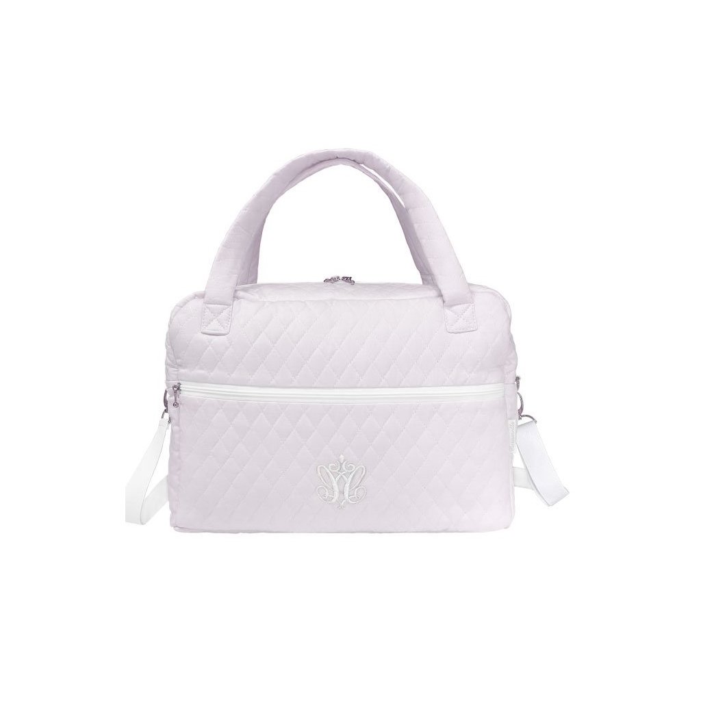 Štýlová a veľmi funkčná taška, do ktorej sa zmestia všetky detské doplnky. Vybavená praktickými vreckami a prídavným dlhým nastaviteľným popruhom, uzatvárateľným na zips. Vyrobená z prešívanej bavlny v odtieni púdrovej ružovej. Povinná výbava každej mamy.