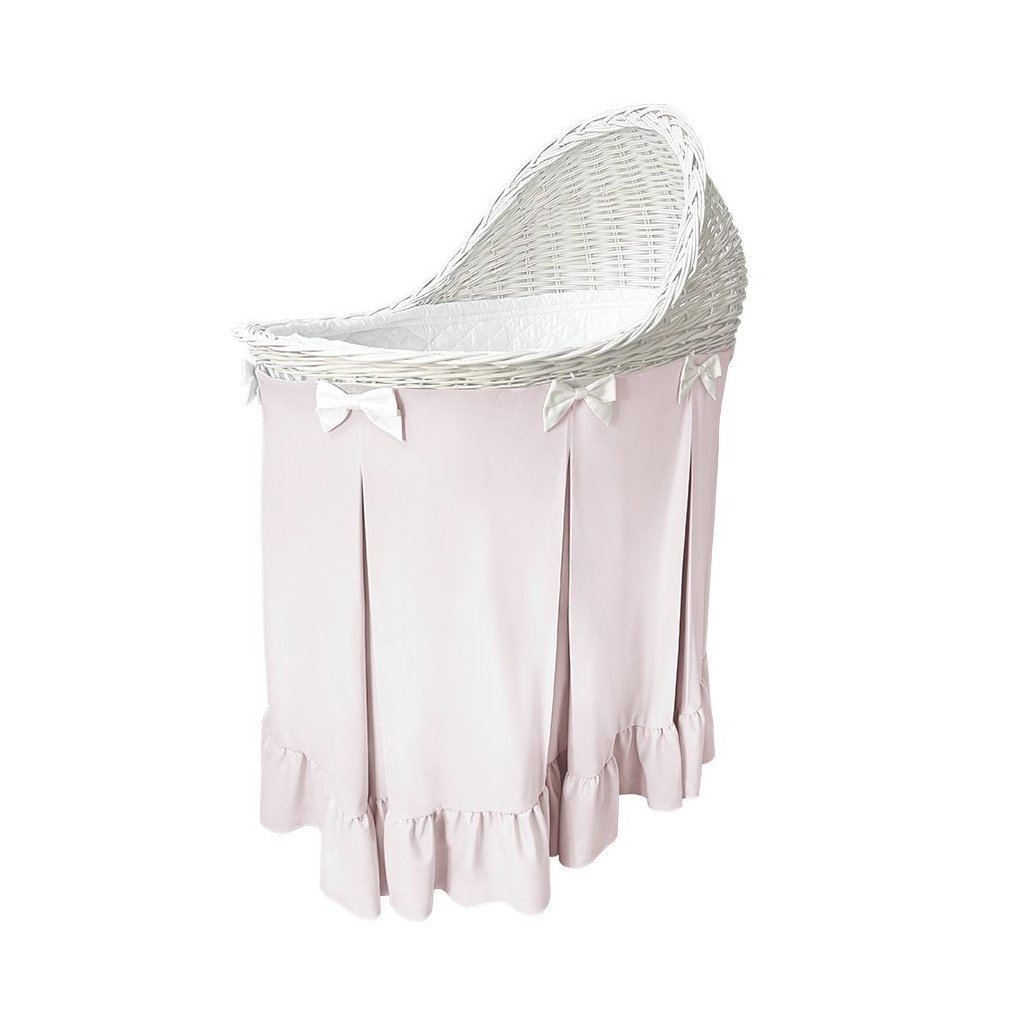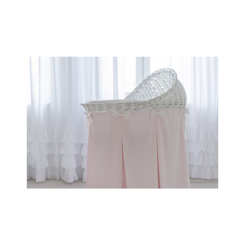 Caramella Baby Pink prútená kolíska s ružovou sukňou a volánom