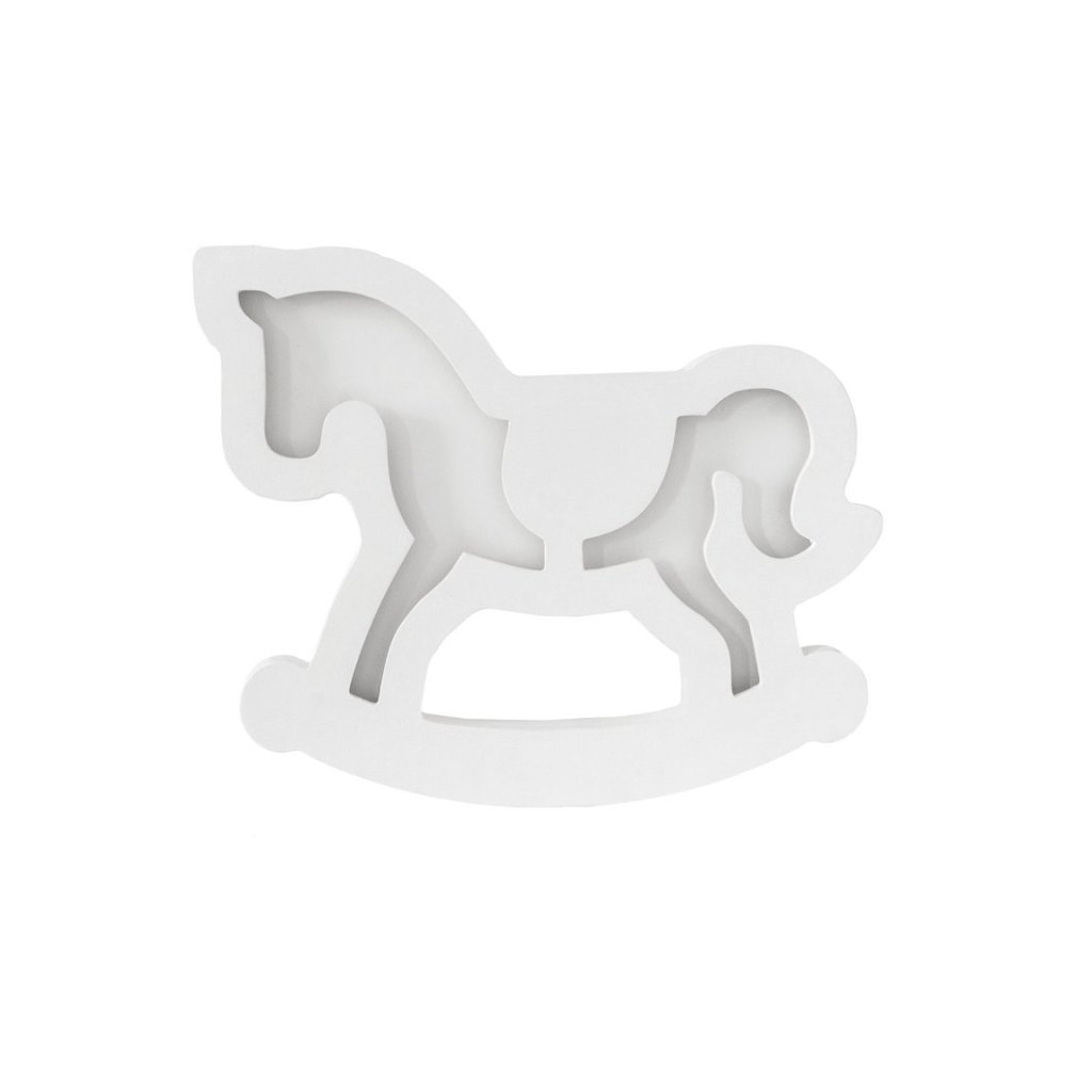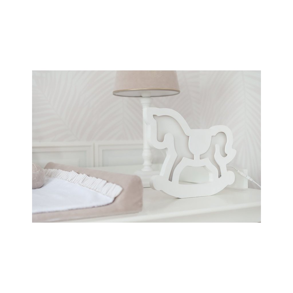 Stojacie svietidlo v tvare hojdacieho koníka. Vyrobené z prírodných materiálov a pokryté vodou riediteľnými farbami šetrnými k životnému prostrediu. Dáva teplé, jemné biele svetlo, vďaka ktorému sa bude skvele hodiť do detskej izby. Bude to tiež mimoriadne originálna dekorácia.