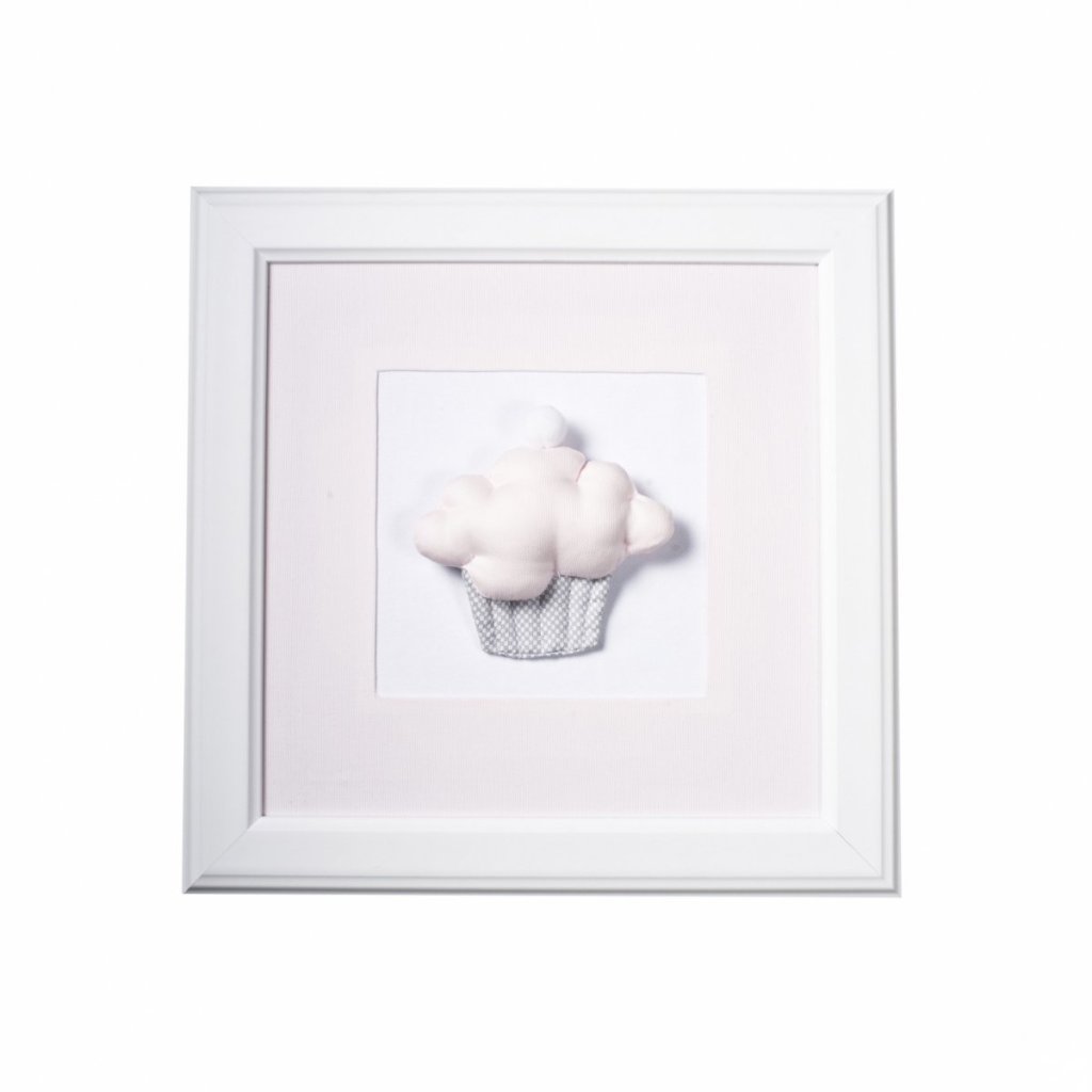 Rozkošný trojrozmerný muffin v detských ružových a sivých farbách. Vnútorná časť obrázka je vyrobená z textilu.