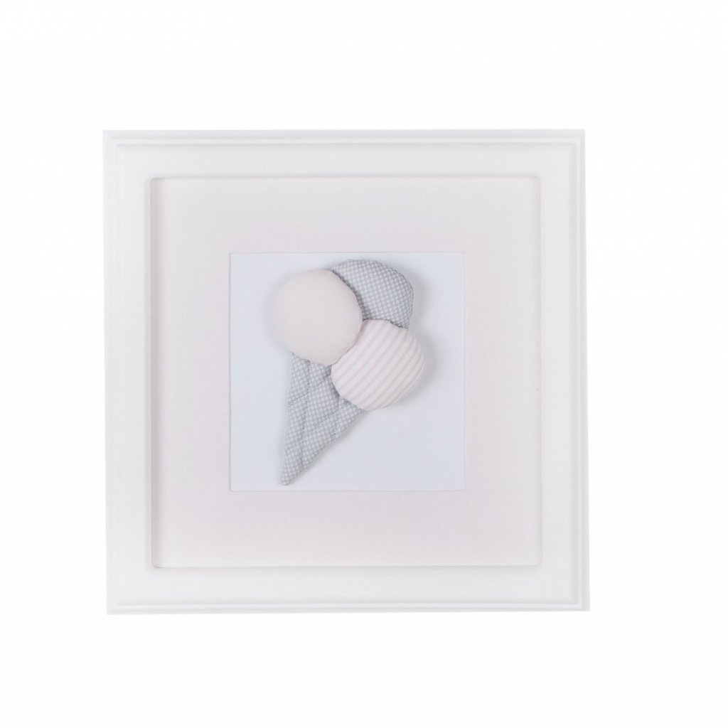 Rozkošná trojrozmerná zmrzlina v detských ružových a sivých farbách. Vnútorná časť obrázka je vyrobená z textilu.