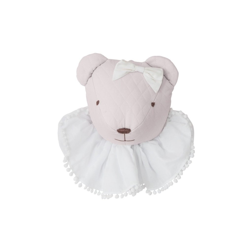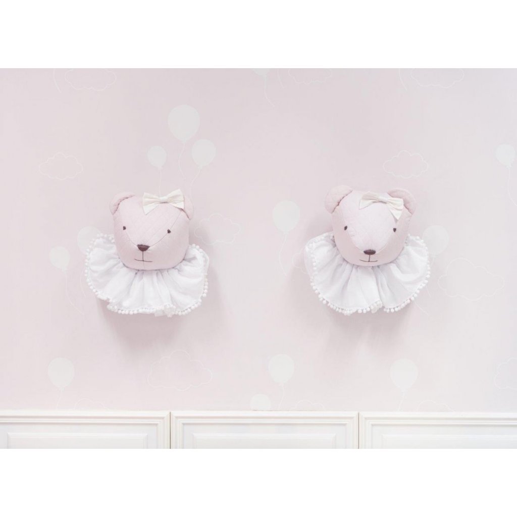 Krásny dizajn pre dievčatá. Dekorácia na stenu, ručne vyrobený macík zdobený volánikom a mašľou.