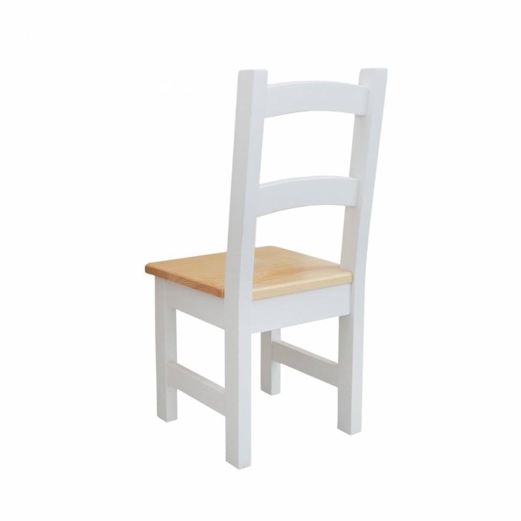 Krásna stolička z borovicového dreva je dokonalým kúskom nábytku do izbičky vášho dieťaťa. Konštrukcia stoličky je veľmi stabilná a jej hrany sú oválne, čo eliminuje možnosť zranenia. Stolička má vyššie operadlo.