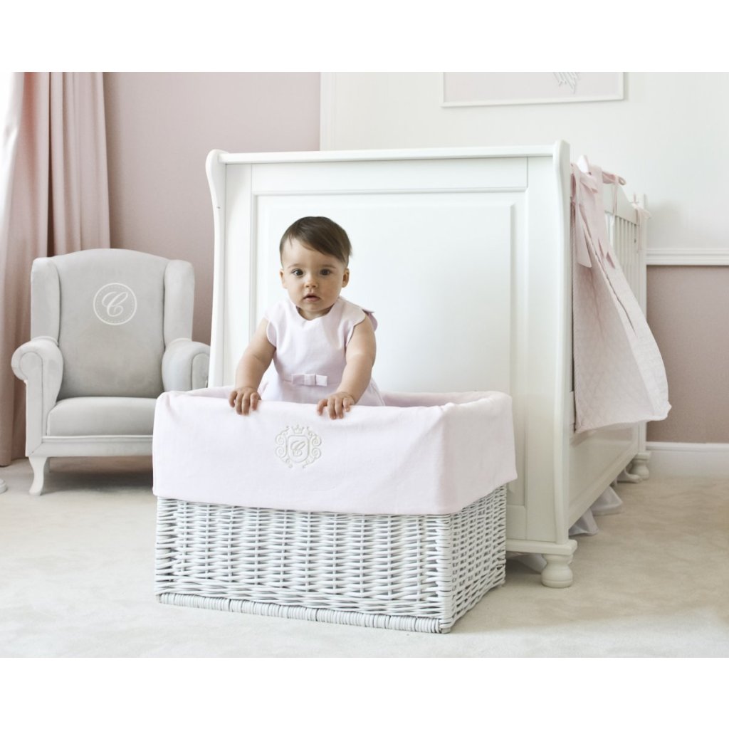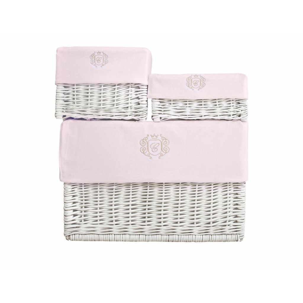 Biele krabičky vyrobené z ručne pleteného prútia lakované v bielej farbe. Krásne ružové vložky so zlatým znakom z neho robia nielen užitočný predmet na uskladnenie, ale aj estetickú a dievčenskú výzdobu. Dostupný v 3 veľkostiach.