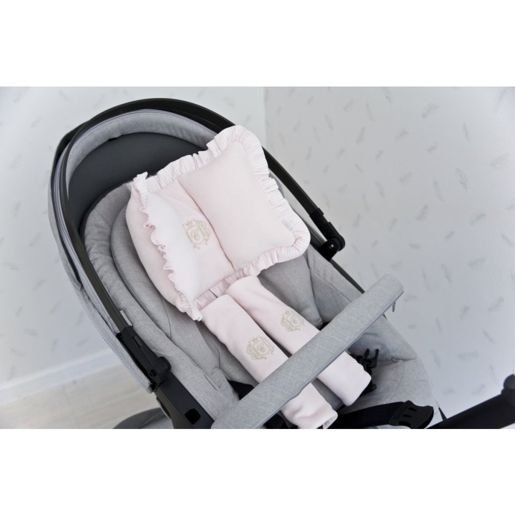 Chrániče bezpečnostných pásov chránia vaše dieťa pred odreninami. Sú vyrobené z jemného velúru a zdobené elegantným emblémom. Dokonale sa hodia ku každému typu kočíka a autosedačky. Odporúčame dokúpiť podhlavník.