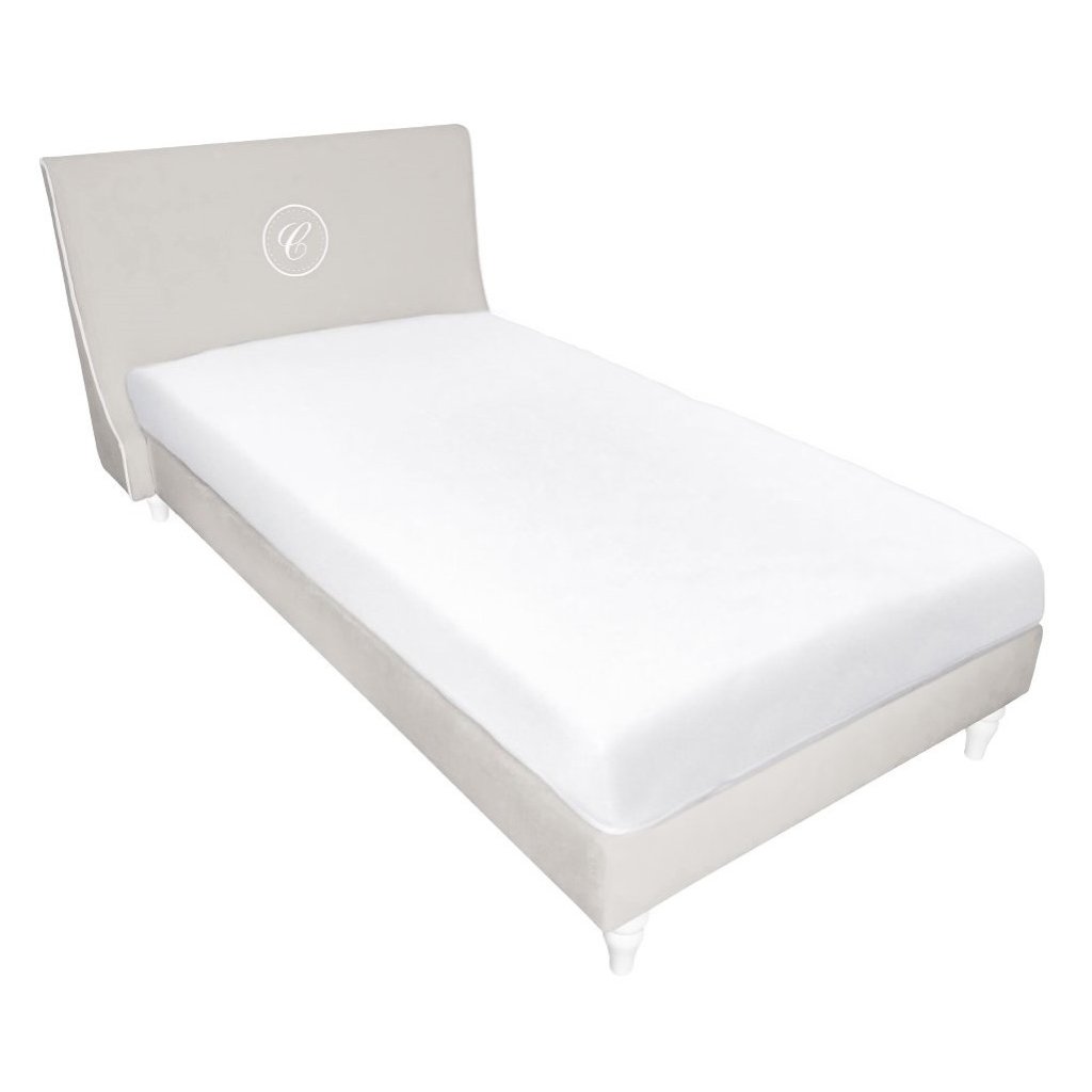 Elegantná detská posteľ s exkluzívnou výšivkou s písmenom „C“. Čelo postele a rám sú čalúnené kvalitnou umývateľnou textíliou v béžovej farbe, vďaka čomu je nábytok ešte funkčnejší. Čelo postele má dekoratívnu stranu a konštrukcia na nohách dodáva posteli ľahký vzhľad. Posteľ si môžete objednať v rôznych veľkostiach a farbách.
