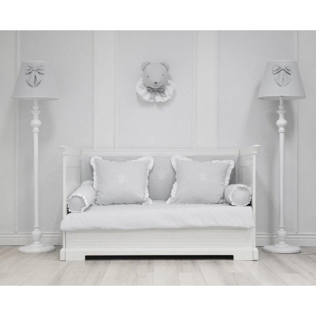 Ochranný mantinel zadný do postieľky je vyrobený z vysoko kvalitnej prešívanej látky zdobený elegantným znakom.