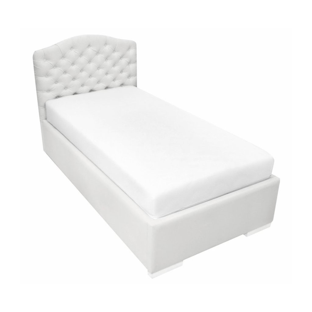 Elegantná detská posteľ s exkluzívnym prešívaným zadným čelom. Čelo postele a rám sú čalúnené kvalitnou umývateľnou textíliou v slonovinovej farbe, vďaka čomu je nábytok ešte funkčnejší. Posteľ si môžete objednať s úložným priestorom na box, ktorý vám umožní uložiť do postele lôžkoviny. Box je súčasťou postele.