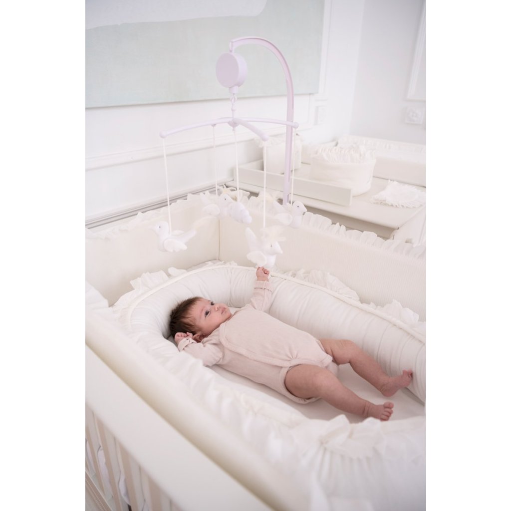Caramella Ivory Mist kolotoč nad postieľku s vtáčikmi slonovinový