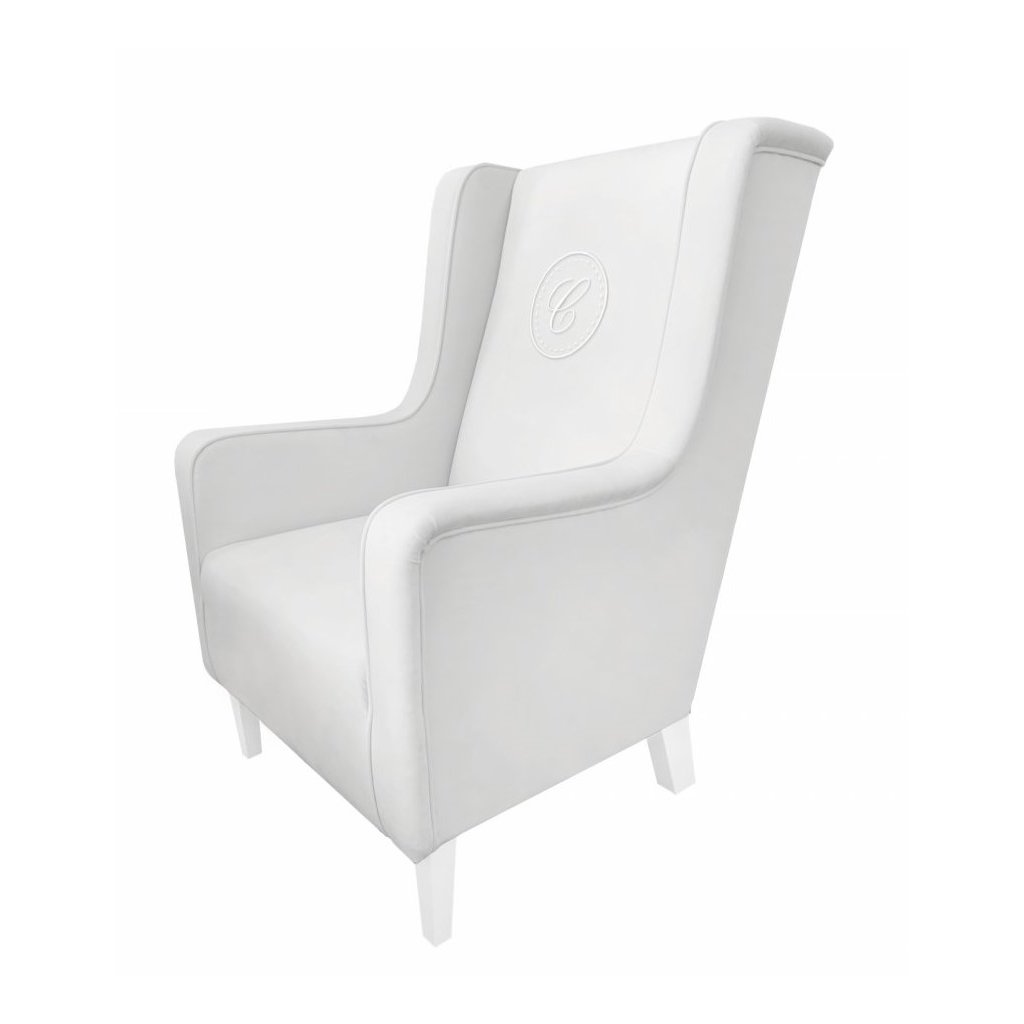 Veľké a veľmi pohodlné moderné kreslo potiahnuté kvalitným umývateľným materiálom v slonovinovej farbe. Kreslo je zdobené elegantnou bielou dekoráciou a exkluzívnym znakom s písmenom „C“ v bielej farbe. Toto kreslo ocení každá dojčiaca mamička vzhľadom na vysoké opierky na hlavu a lakťové opierky. Kreslo zapadá do každého interiéru - detskej izby, obývacej izby, spálne a ďalších.