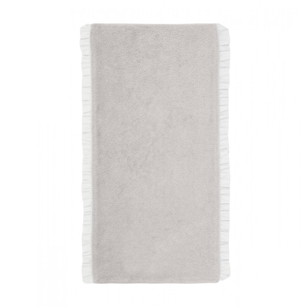 Náhradný poťah na prekrytie prebaľovacej podložky. Vyrobený zo slonovinovej froté bavlny s bielym znakom, rozkošným riasením.