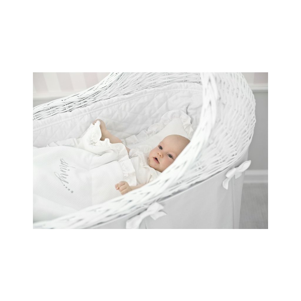 Caramella Ivory Mist prútená kolíska so smotanovou sukňou a volánom