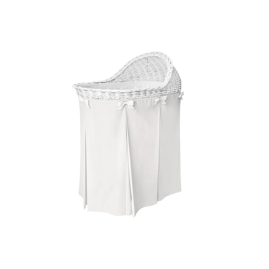 Veľmi okúzľujúci kolíska pre novorodenca, vyrobená z prírodného ručne tkaného prútia v bielej farbe. Kolíska je na kolieskach, vďaka čomu ju môžete jednoducho presúvať.