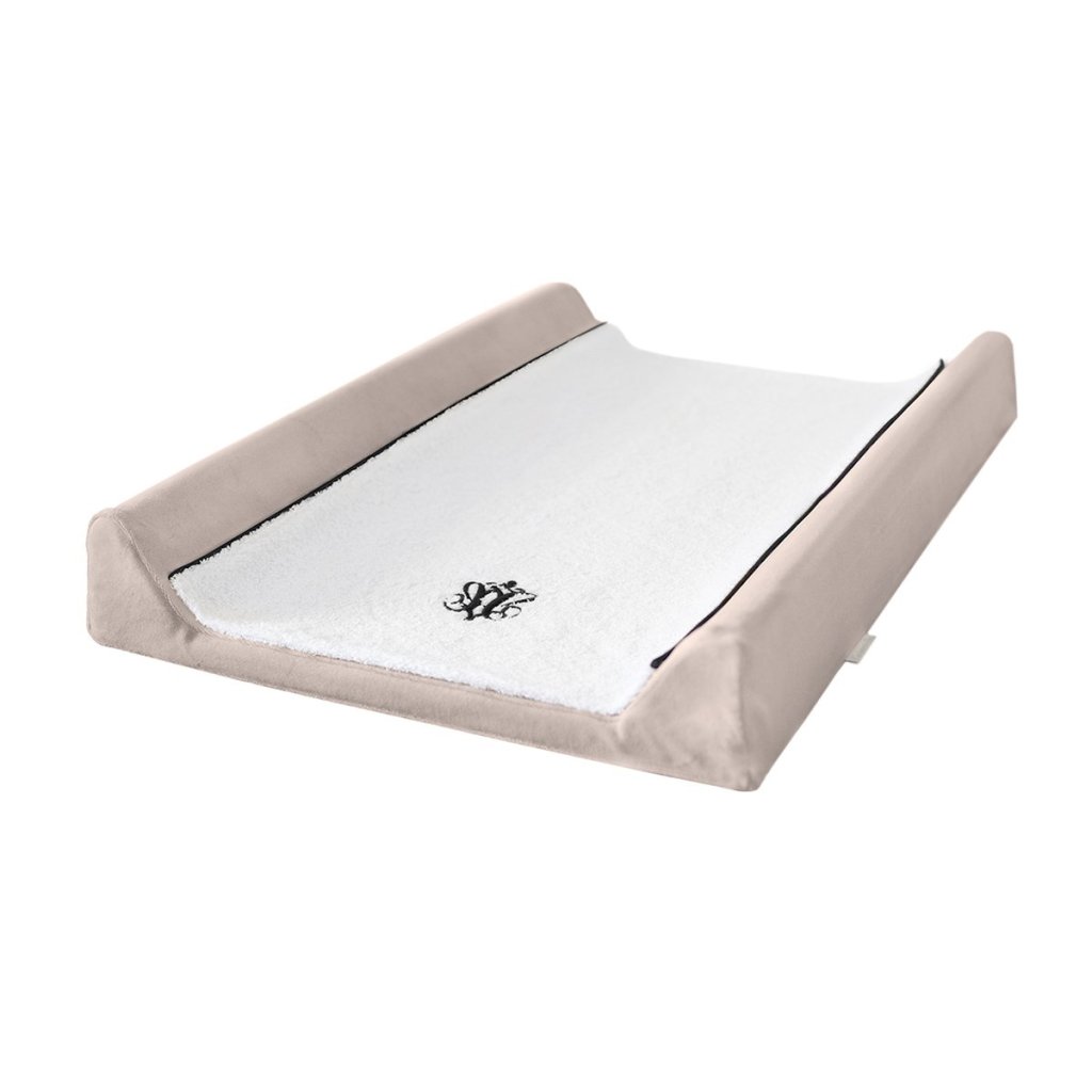 Poťah na prebaľovaciu podložku. Látka z kolekcie Modern Classic.Vyrobená z bieleho froté, zdobená čiernou lemovkou a výšivkou.