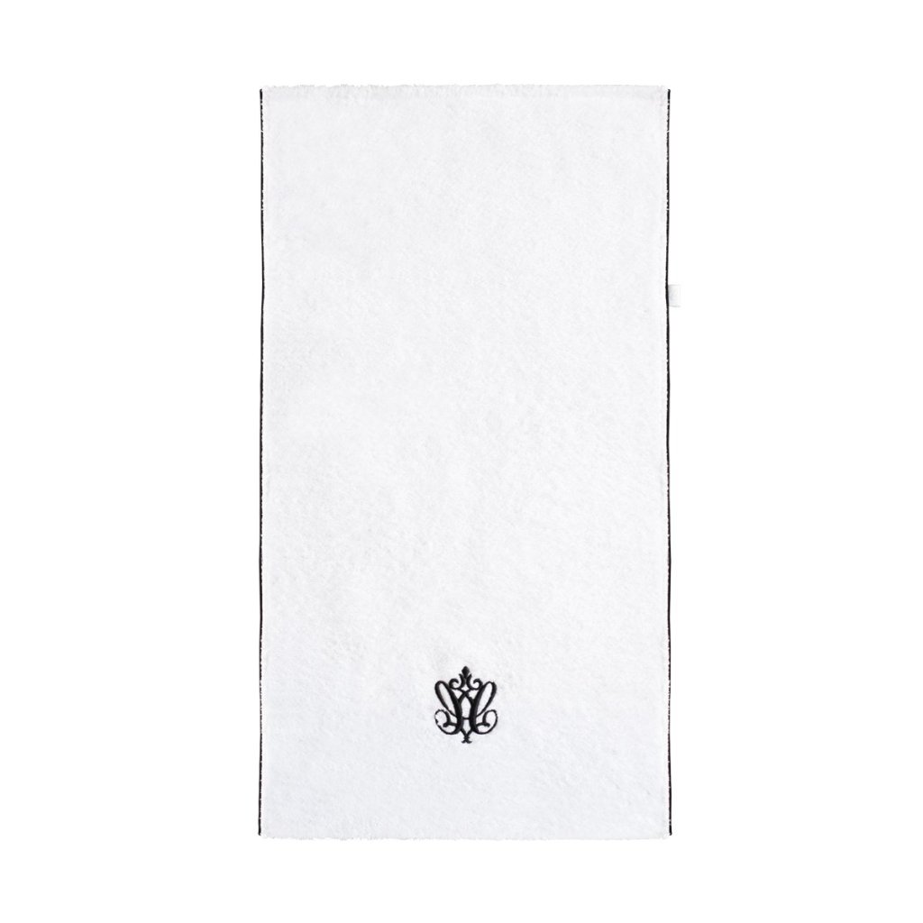Poťah na prebaľovaciu podložku. Látka z kolekcie Modern Classic. Vyrobená z bieleho froté, zdobená čiernou lemovkou a výšivkou.