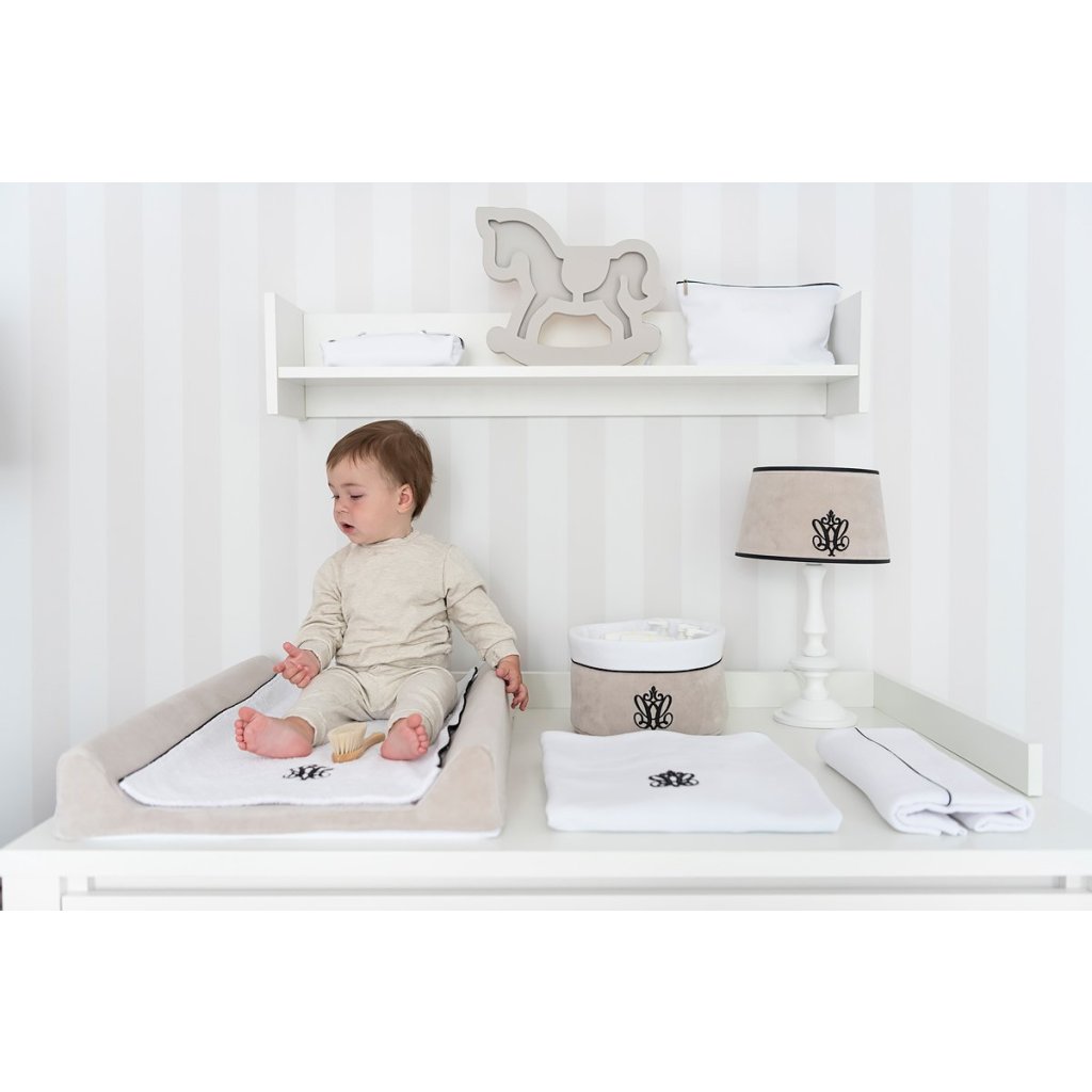 Vystužená elegantná prebaľovacia podložka mimoriadne pohodlná na prebaľovanie vášho bábätka vďaka vysoko kvalitným a jemným materiálom, pričom kombinuje funkčnosť s estetikou.
