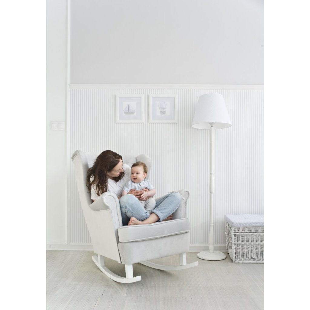 Veľké pohodlné kreslo ušatého typu vyrobené z kvalitného prateľného textilu béžovej farby. Kreslo je ideálne pre dojčiace mamičky kvôli vysokému operadlu, "uškám" pod hlavou a podrúčkam. Hojdanie bábätko upokojí a umožní mu rýchlejšie zaspať. Obohatí každý interiér - detskú izbu, obývačku a iný priestor.
