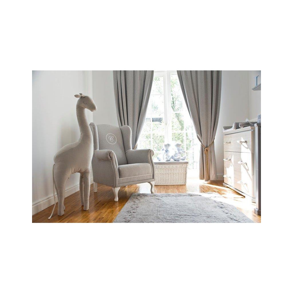 Rozkošná, ručne vyrábaná žirafa potiahnutá ľahko prateľným bledošedým textilom. Bude to najlepší priateľ vášho dieťaťa a krásna dekorácia v detskej izbičke.