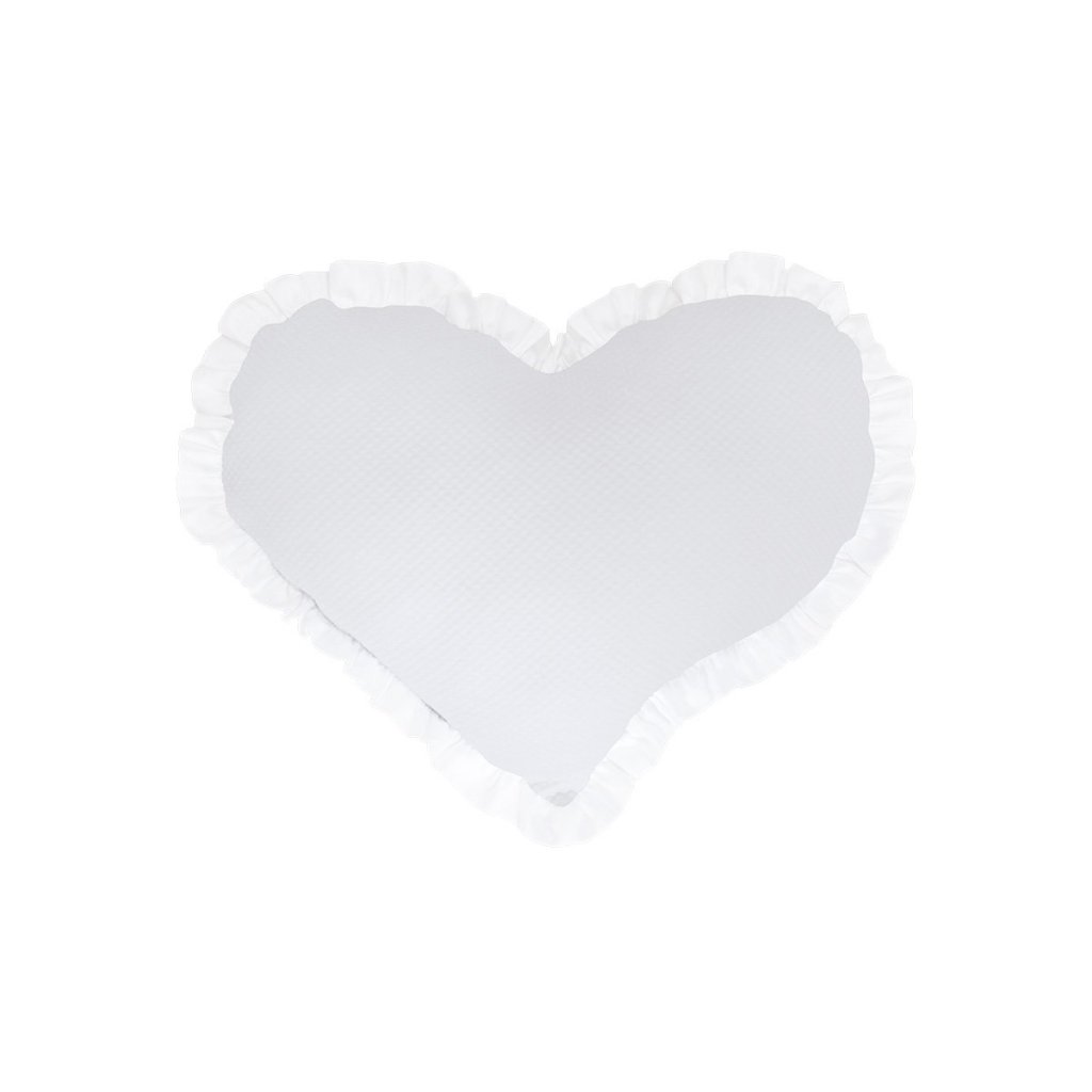 Krásny vankúšik v tvare srdca s ozdobným volánom vytvorí vo vašej detskej izbe jedinečnú atmosféru. Dostupné v dvoch veľkostiach.